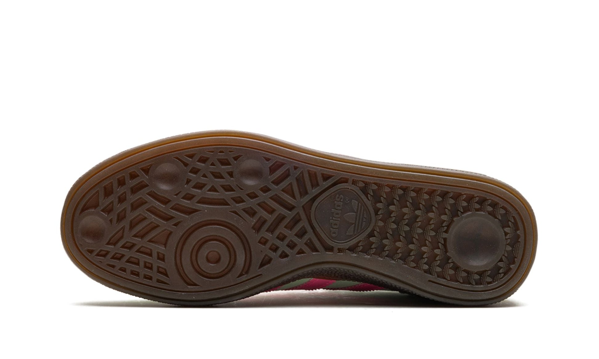 The adidas Handball Spezial “Semi Green Spark” is a head-turning colorway of the retro shoe by the popular footwear brand. The adidas Handball Spezial is a popular, casual sneaker with a versatile silhouette. On this colorway, the shoe features a Semi Green Spark suede upper with Lucid Pink leather Three Stripes on the sides. More Lucid Pink accenting can be found on the leather heel tab, laces, and on the “adidas” branding printed on the tongue. The shoe’s design is rounded into form with a dark gum rubber sole.
