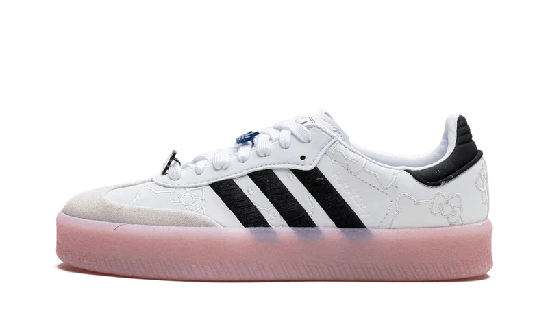 La adidas Sambae "Hello Kitty" pour femme est une édition spéciale qui célèbre l'univers kawaii de Sanrio avec une touche rétro. Ce modèle revisite la silhouette classique de la Samba avec des détails adorables et un style unique.